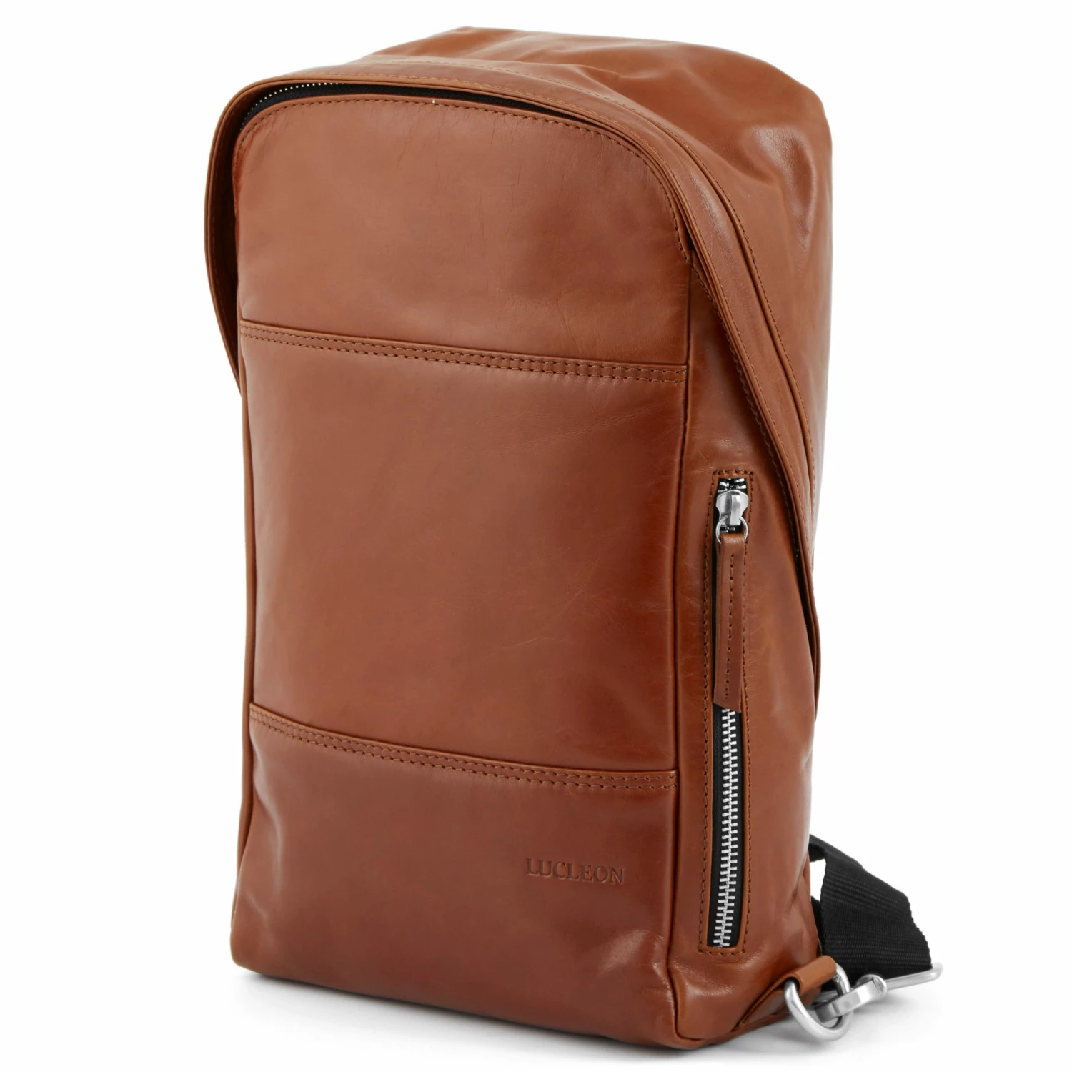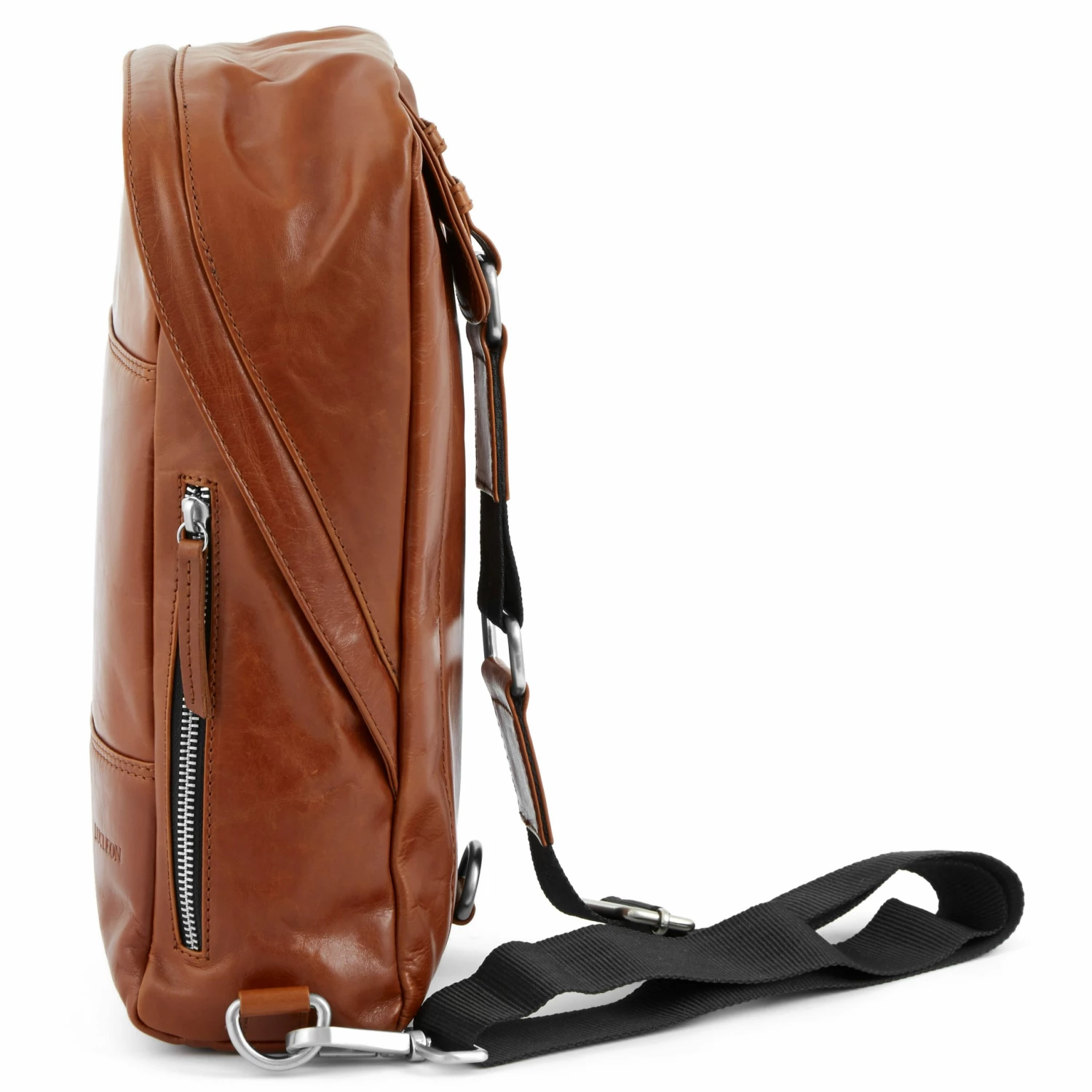 For your convenience, the single strap on the back can be switched from one side to the other. A YKK zippered side pocket keeps essentials at reach.