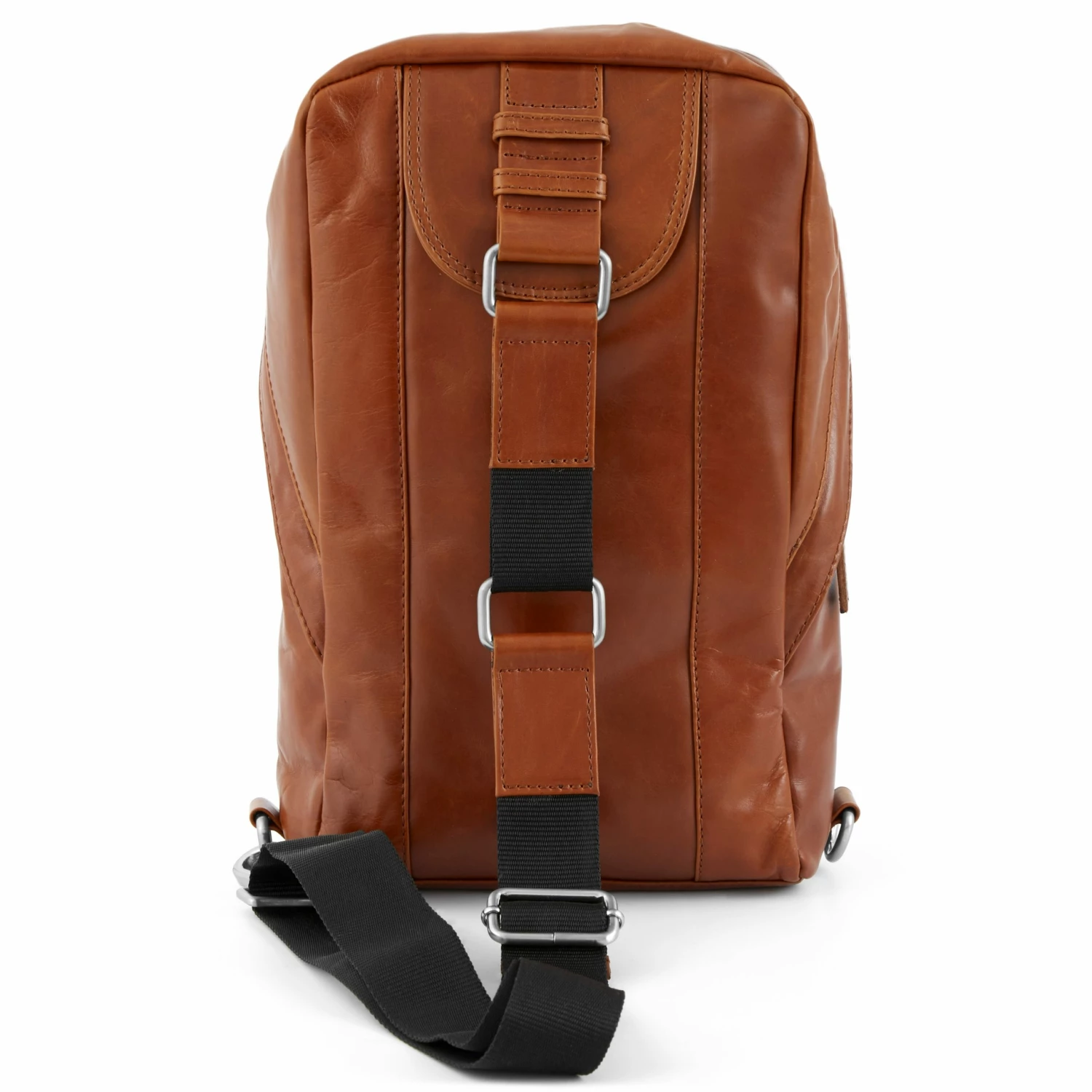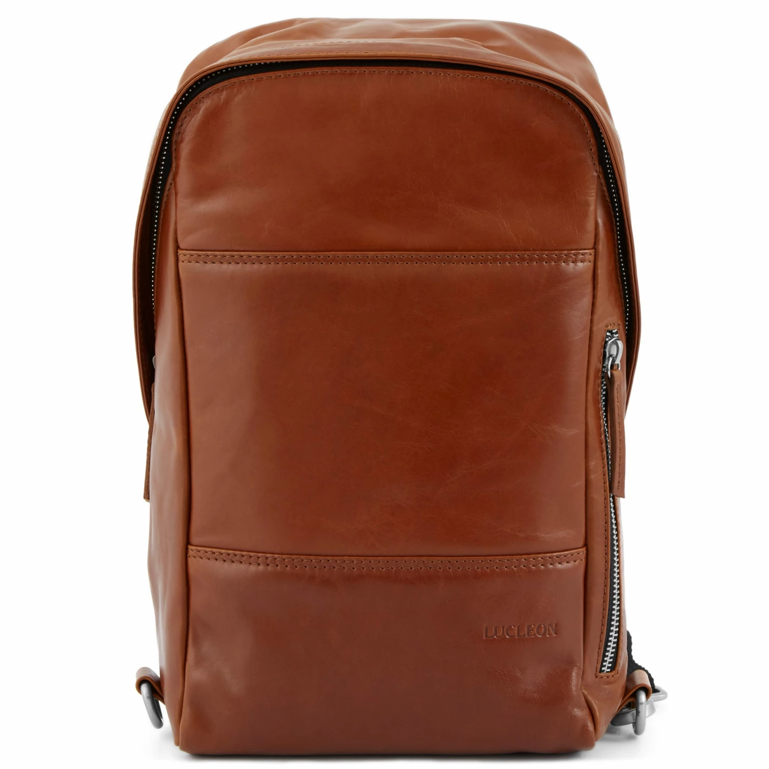 This is a striking backpack in genuine tan leather, elegant as it is functional.