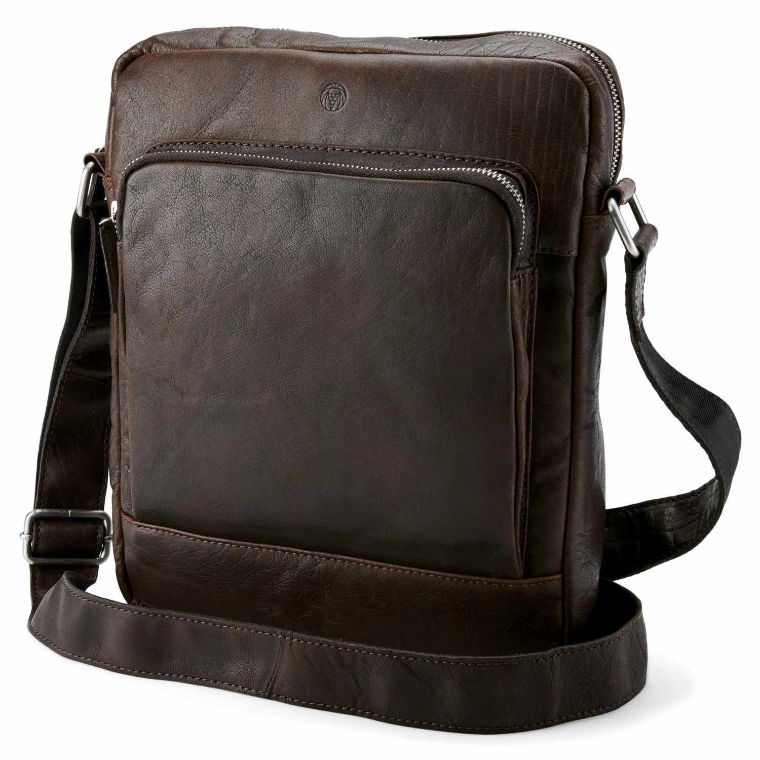 Keep things light with this slim leather bag for men. Has just enough room for the essentials like your keys, wallet, phone, and tablet, along with some other stuff.