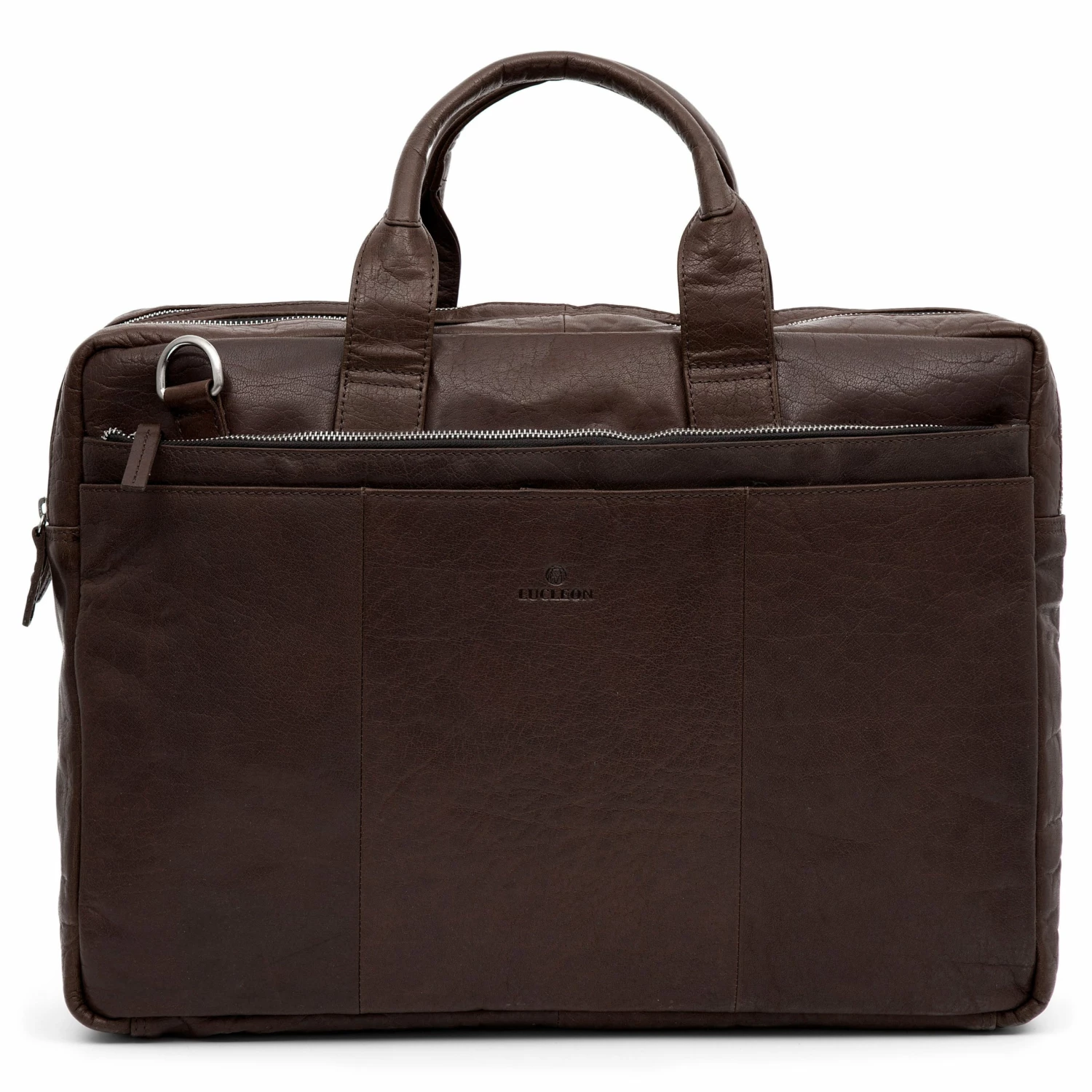 Tired of lugging a separate carrier for your laptop? In this streamlined premium leather bag your laptop has its own pocket. You have 5 parallel, full-length compartments for your business essentials. Simple, practical, elegant.