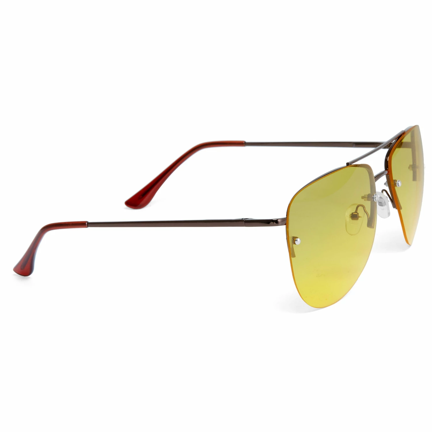 Yellow lenses block out harmful UVA and UVB rays while giving you a more colourful view of the world. Brown curved temple tips ensure a secure fit. Molded silicone provide ultimate comfort.