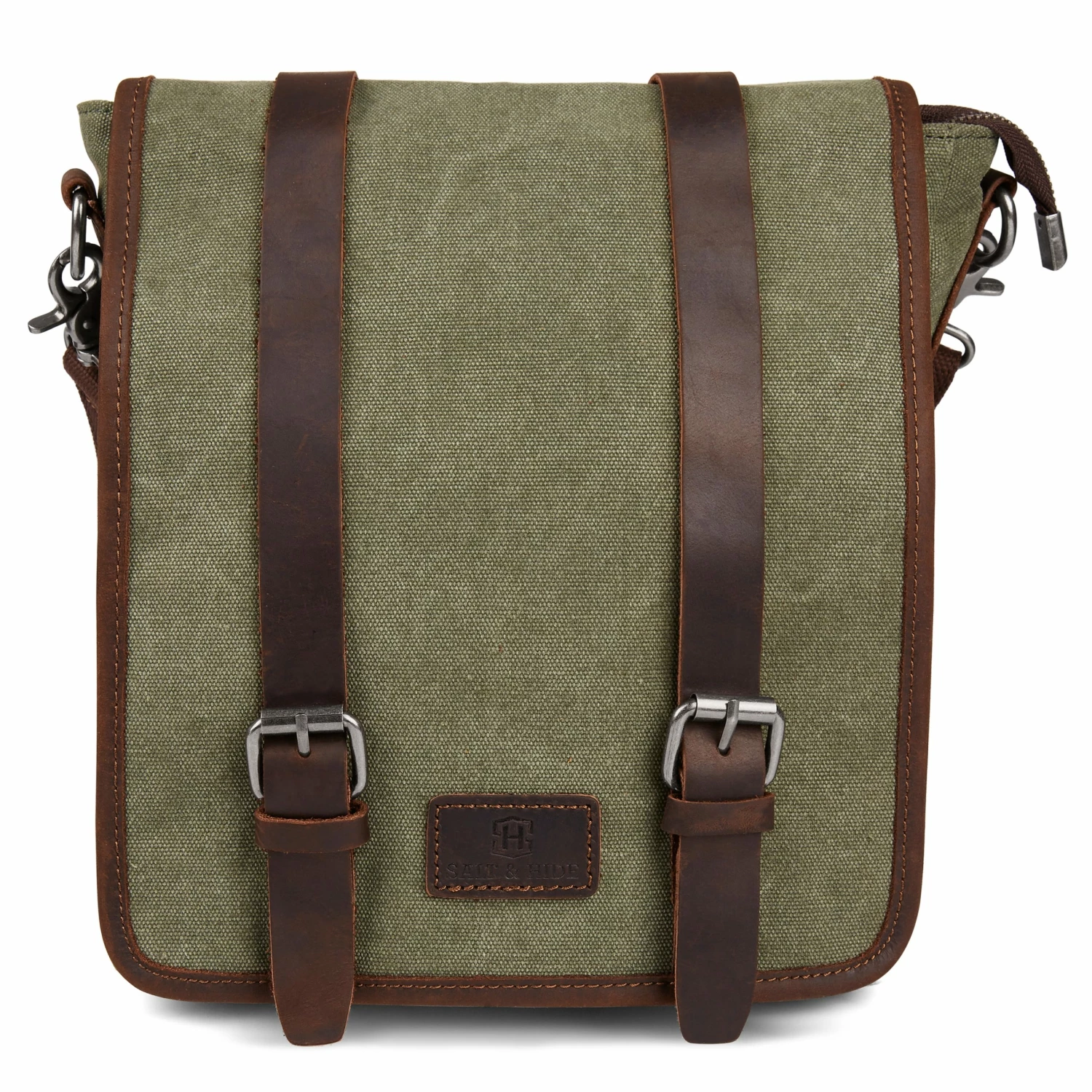 Crafted with sturdy green cotton canvas, tough genuine leather, metal accents, and strong YKK zippers. It easily withstands years of wear and tear.