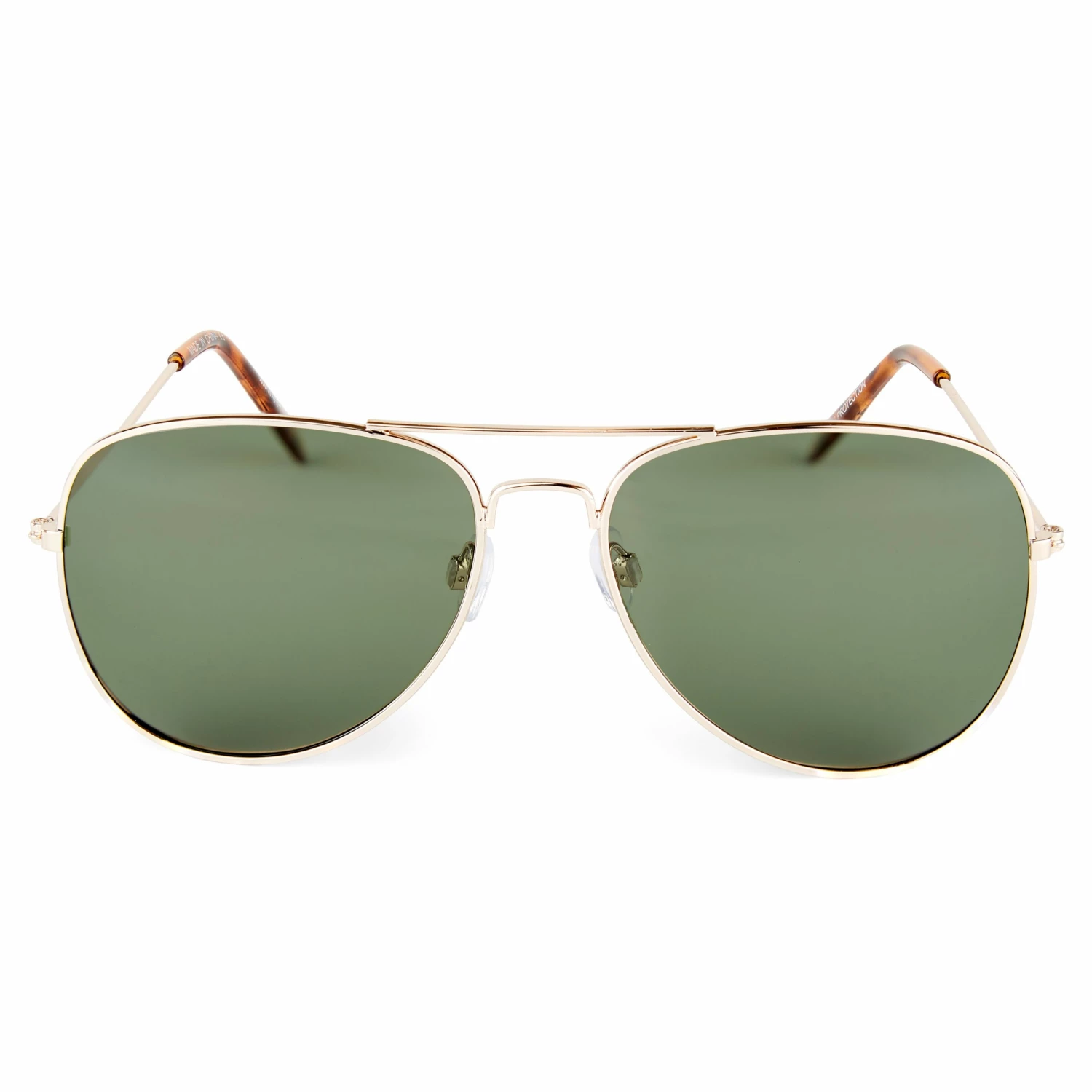 You donβt have to be a pilot to enjoy a pair of aviators. This pair offers 100% UV protection and high-flying style with its gold-tone metal frame and green lenses. Polarized to reduce glare.